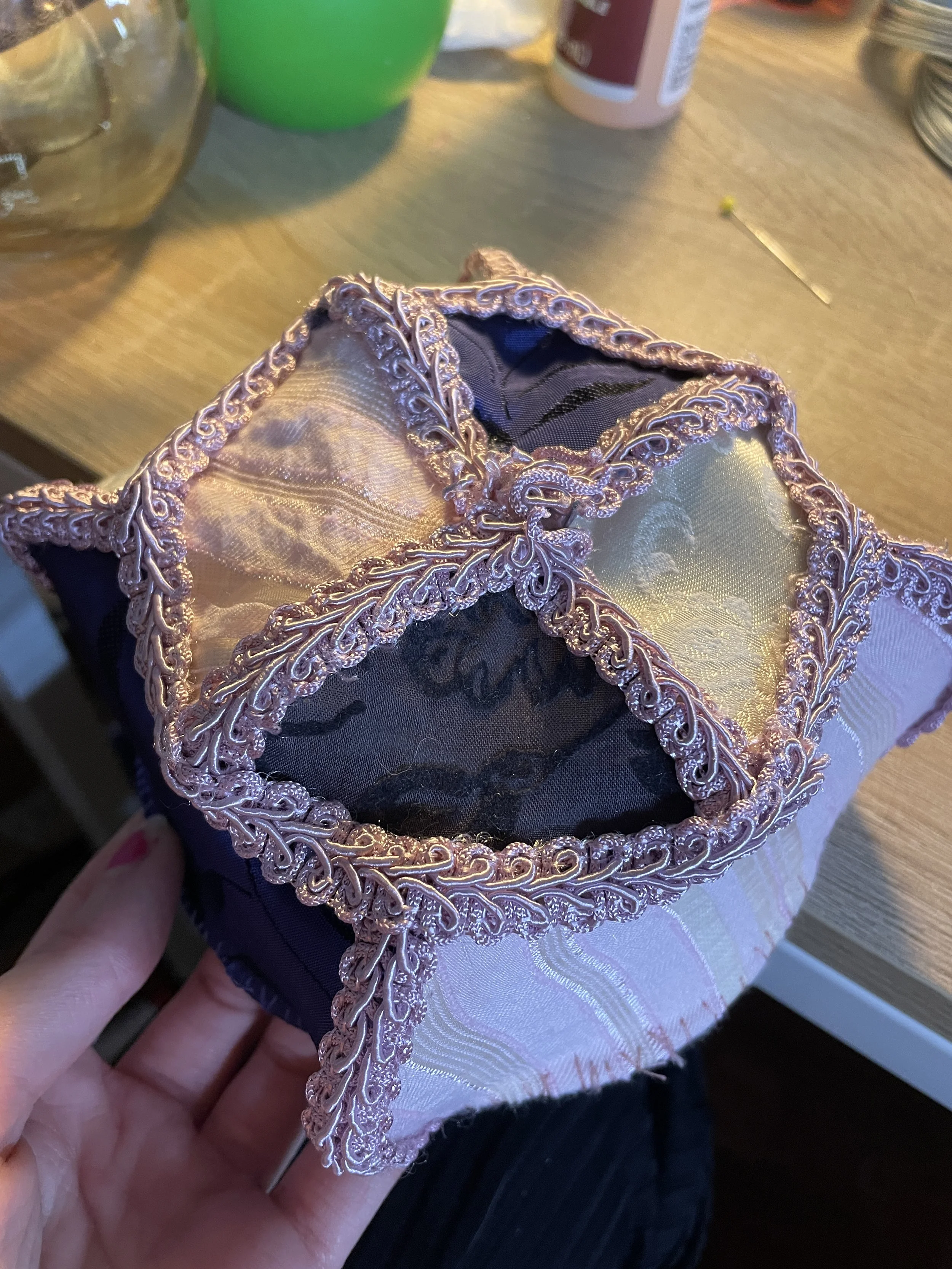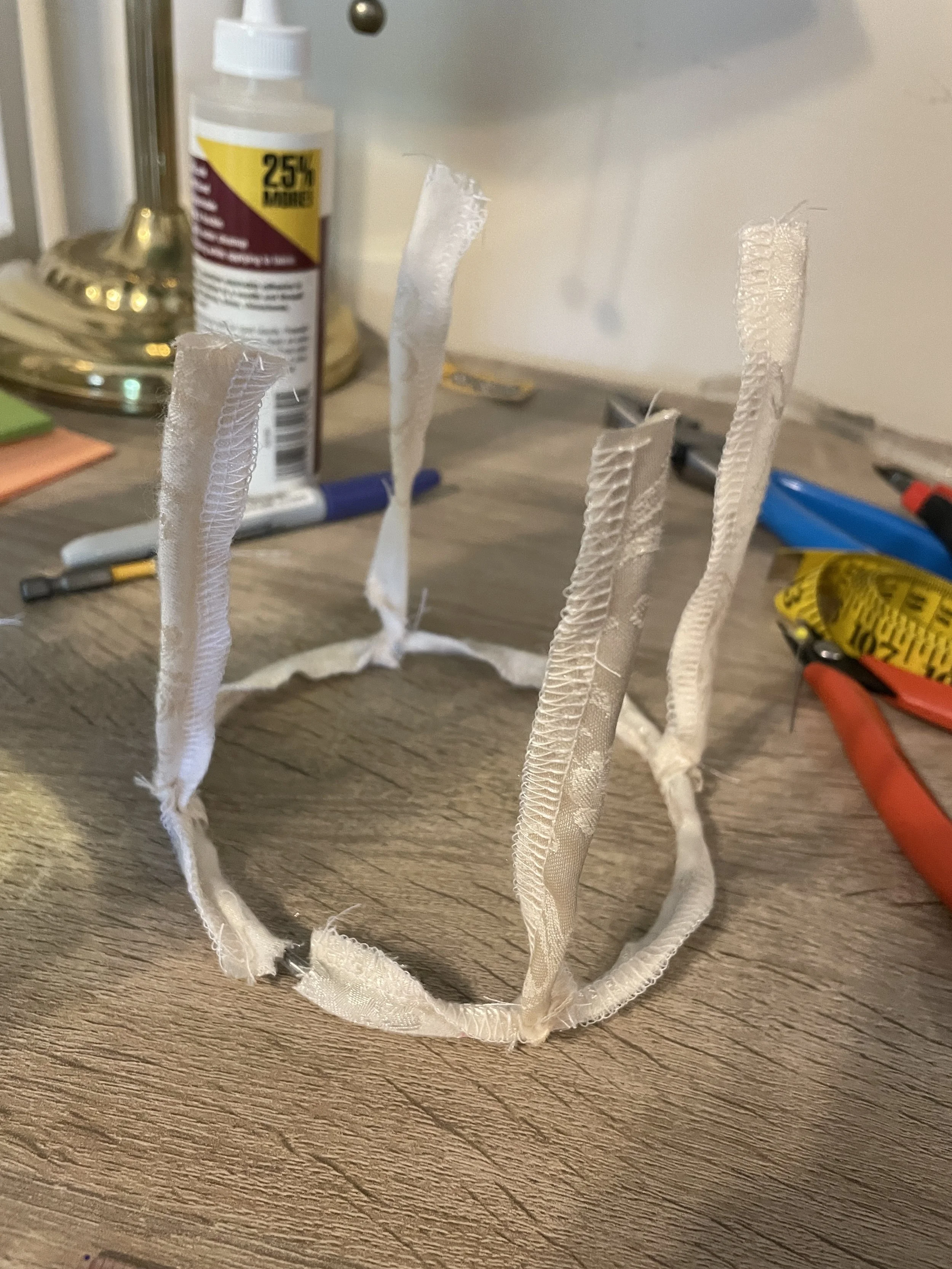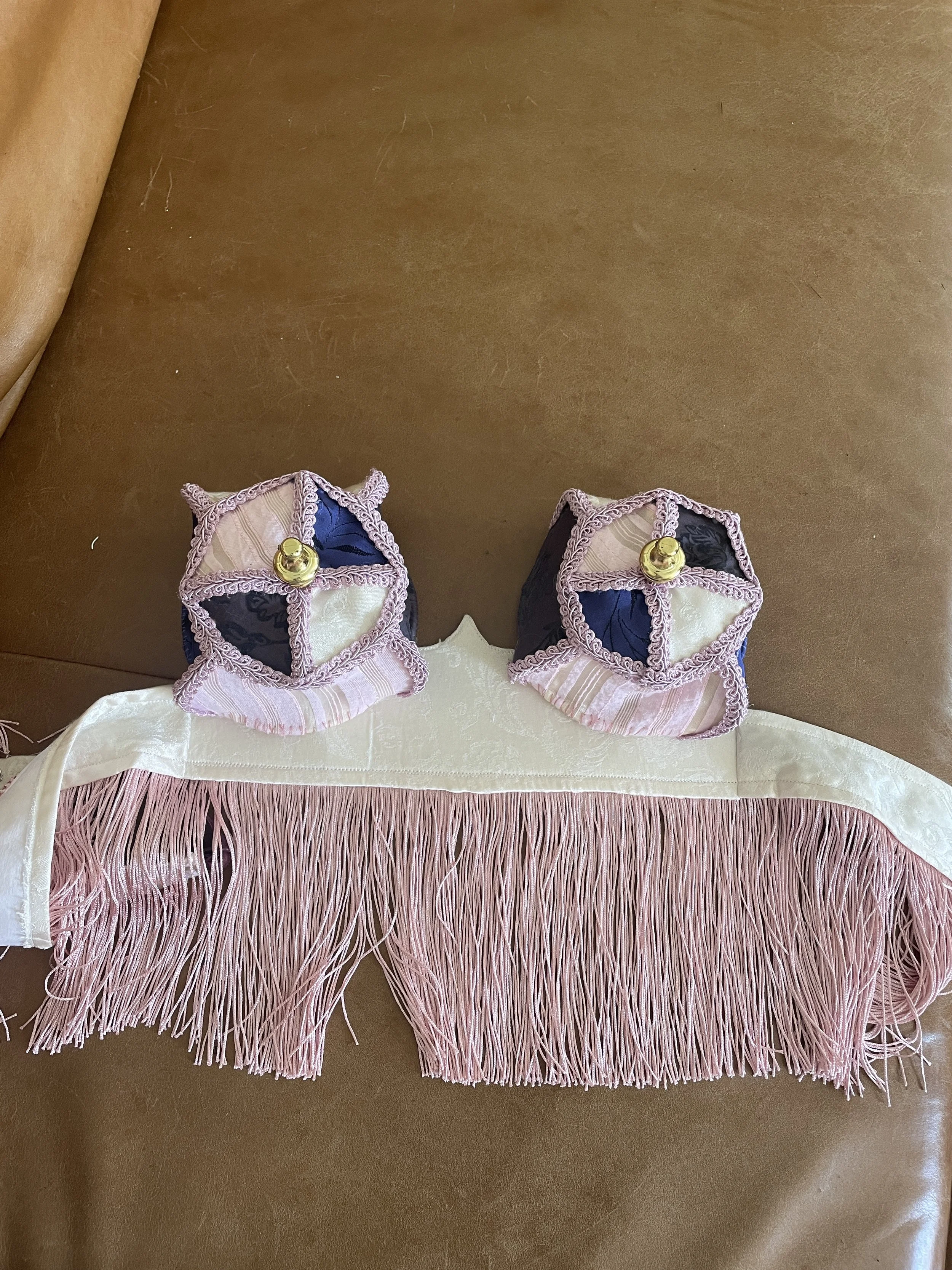 A take on the 1950s bullet bra - inspired by burlesque costume and vintage lampshades. Made from upcycled materials.