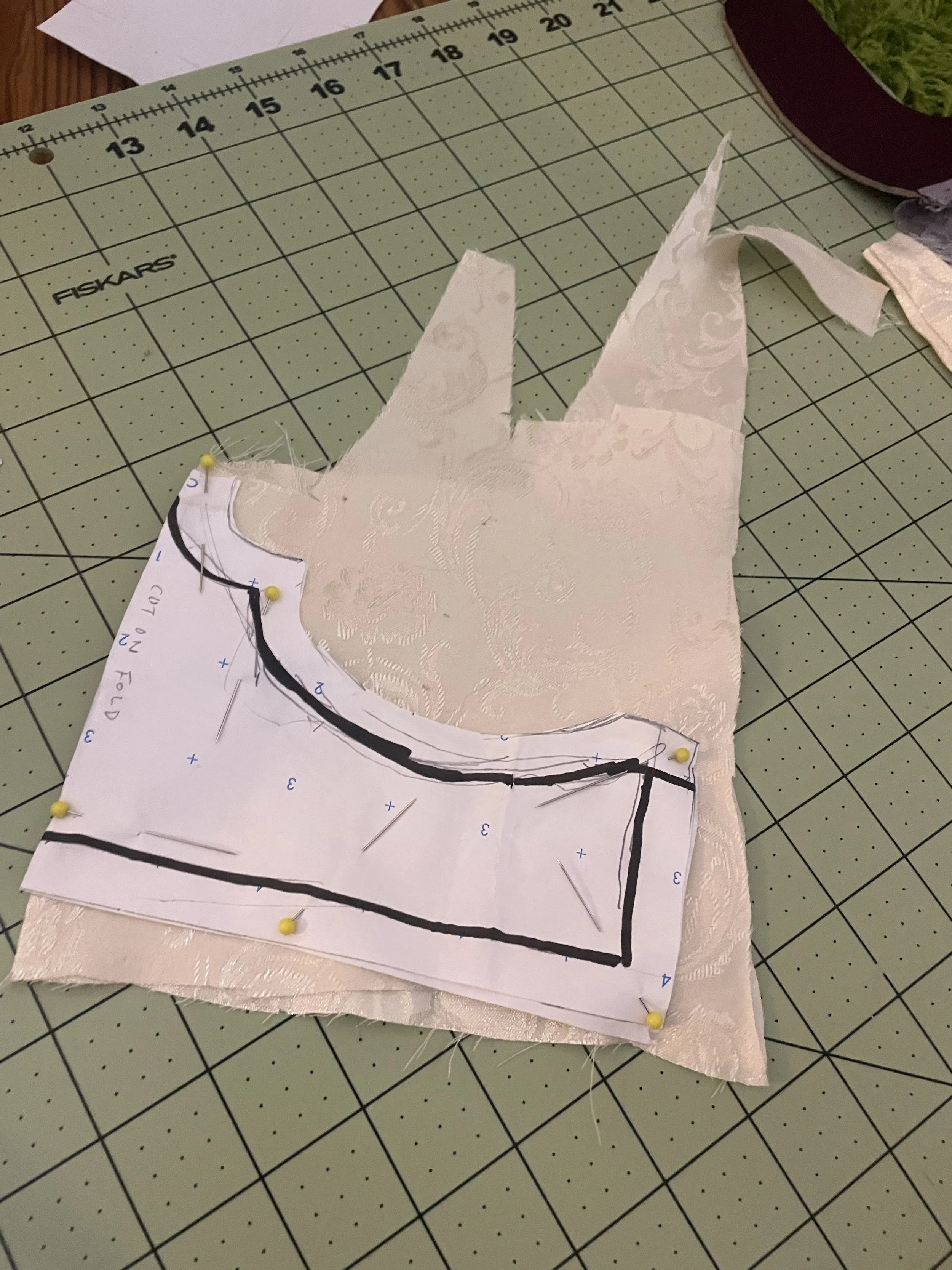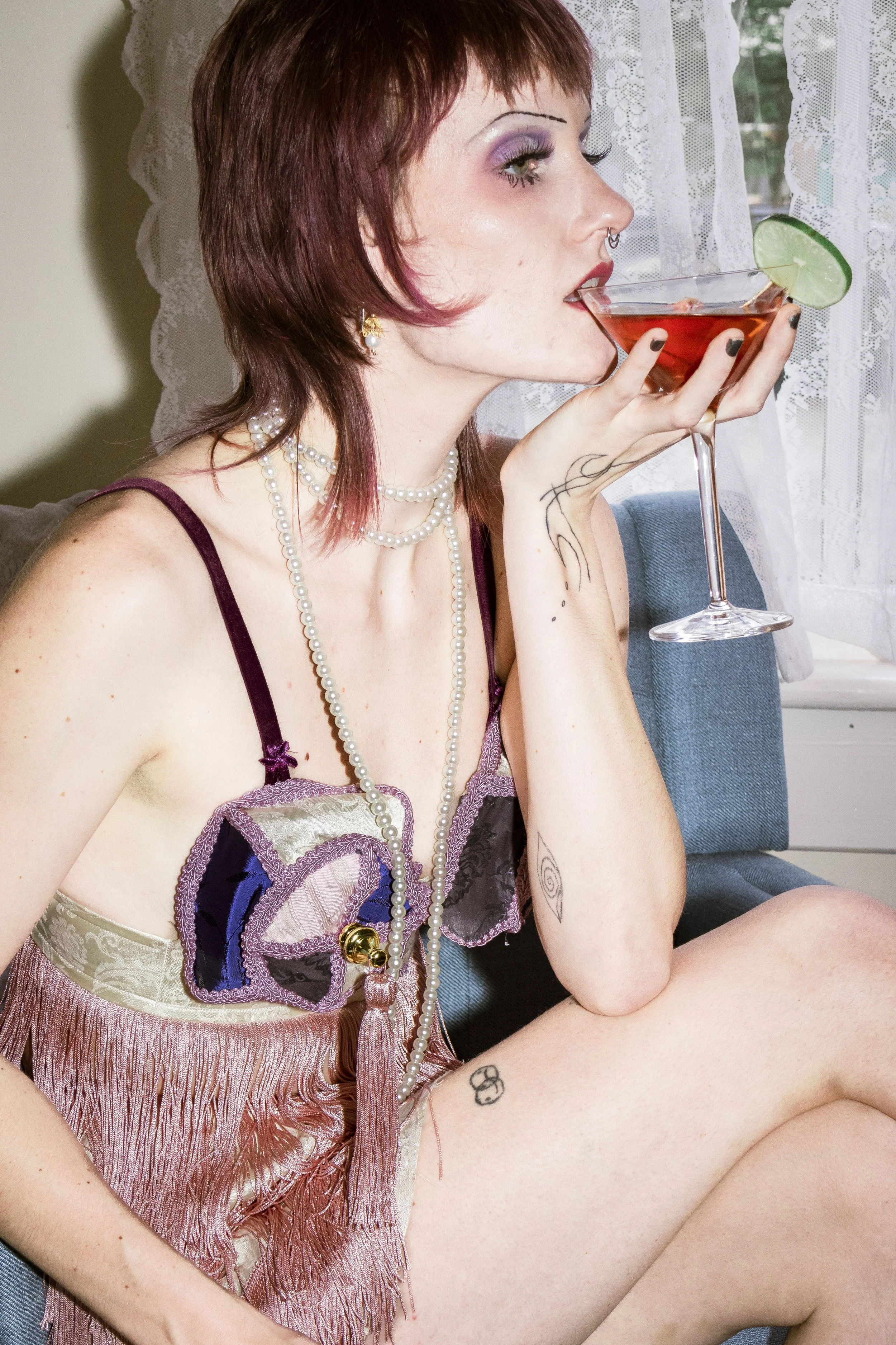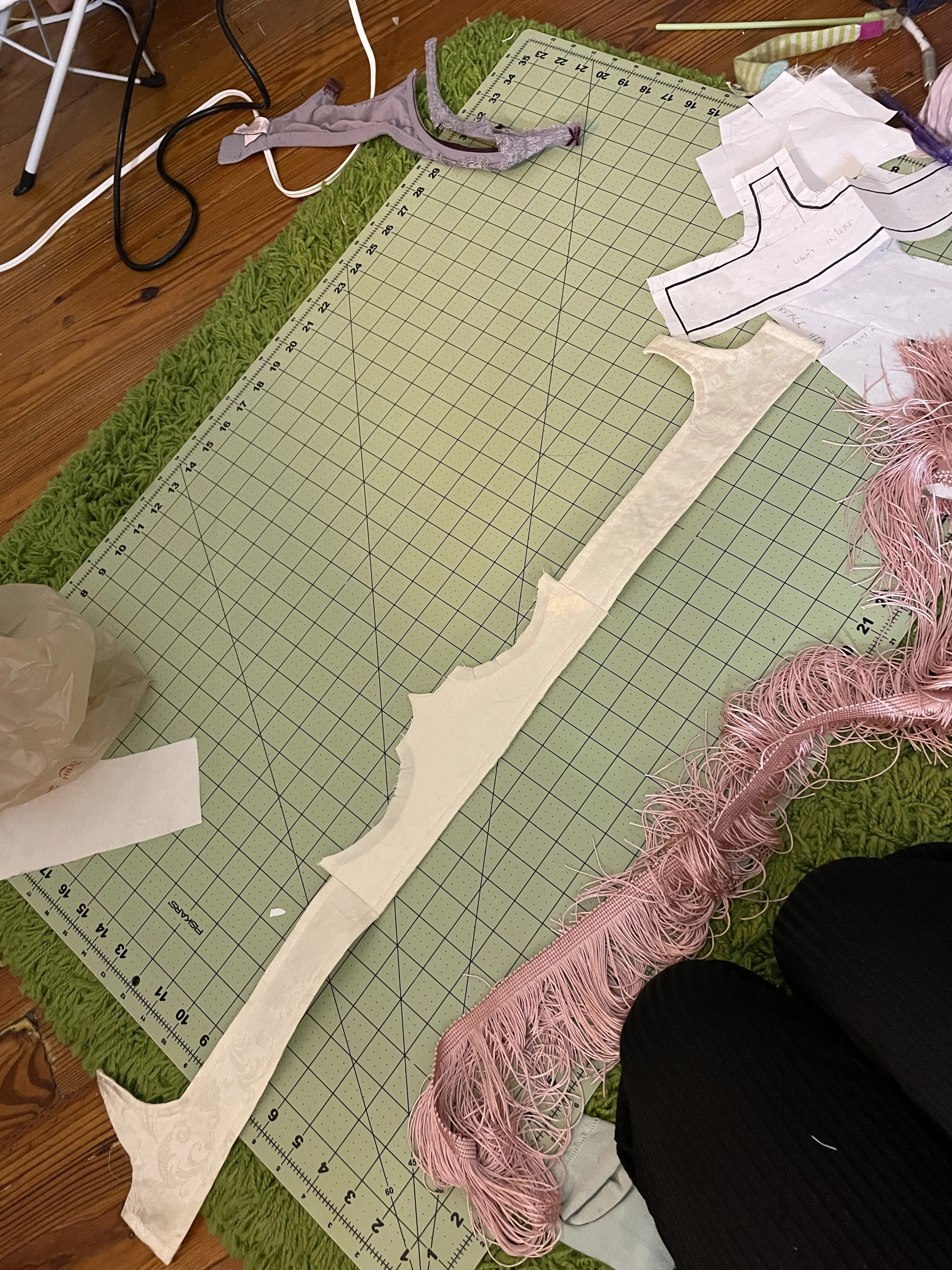 A take on the 1950s bullet bra - inspired by burlesque costume and vintage lampshades. Made from upcycled materials.