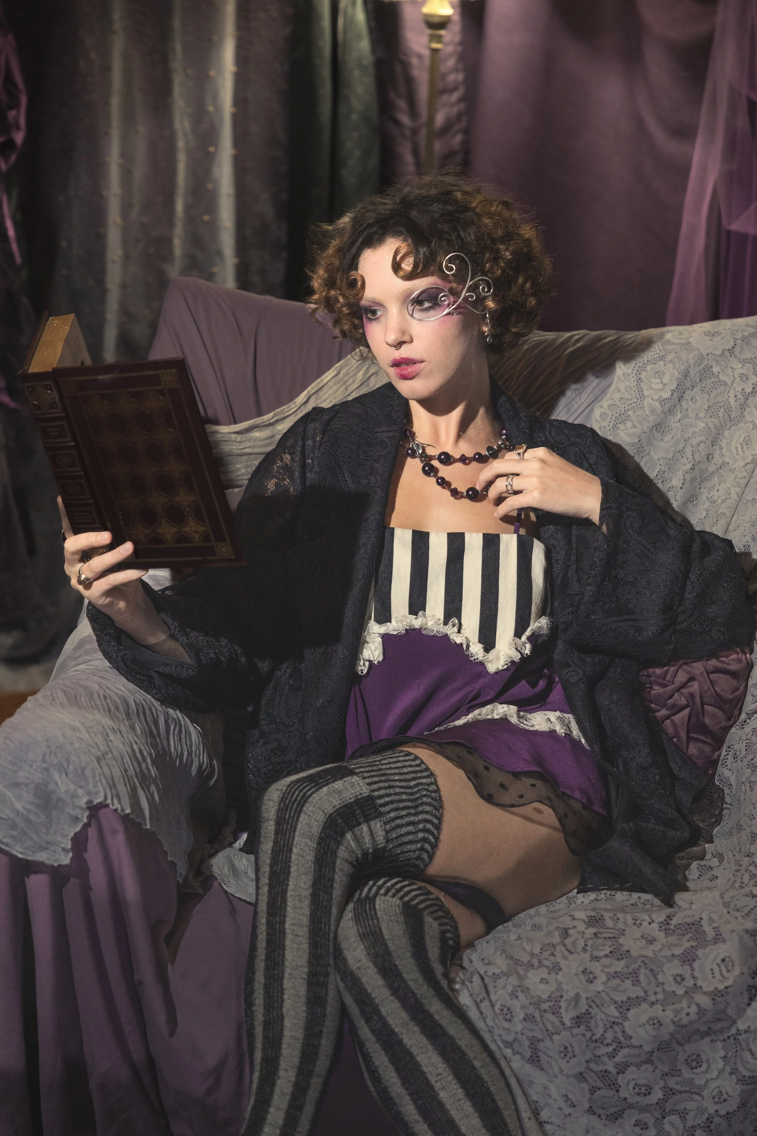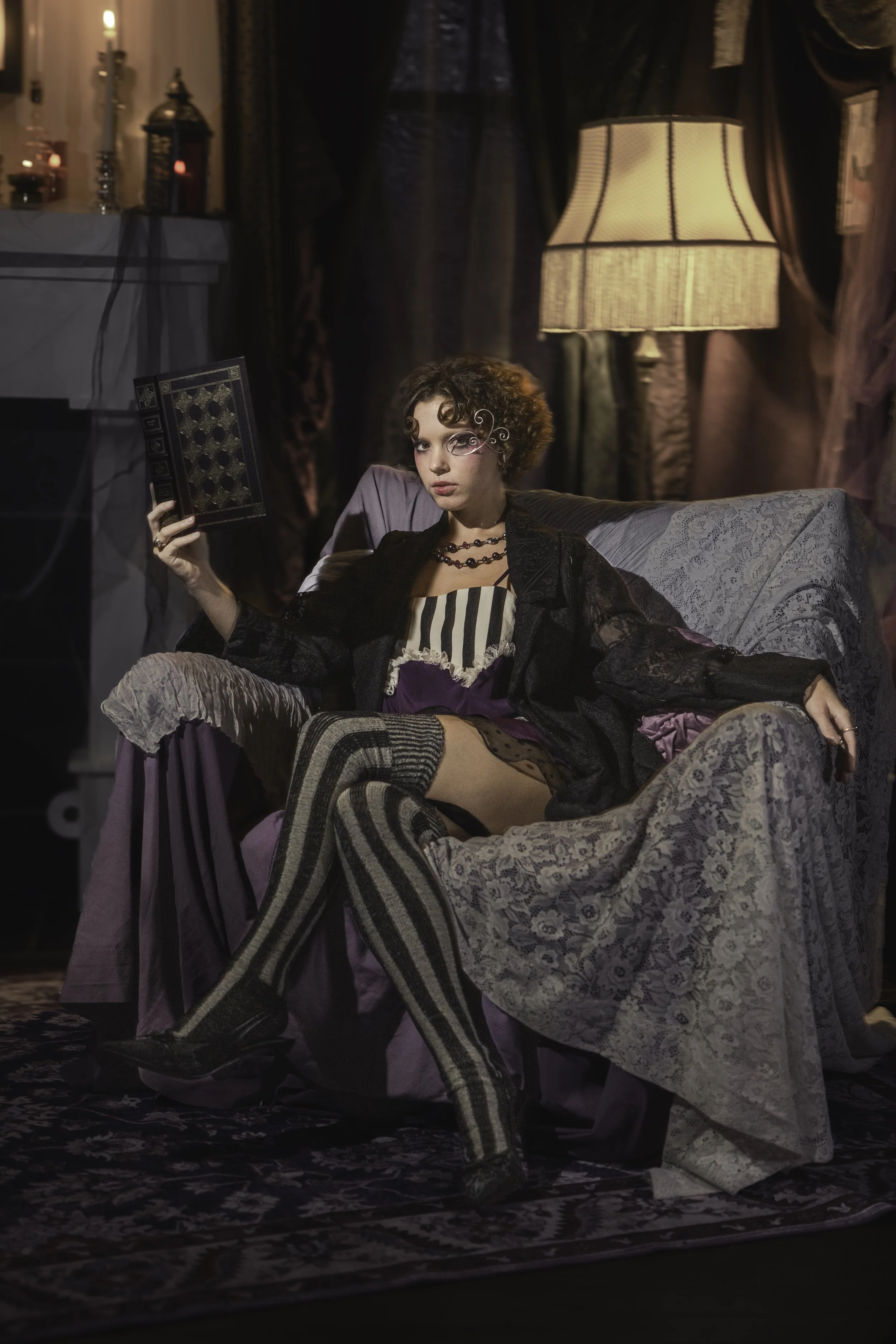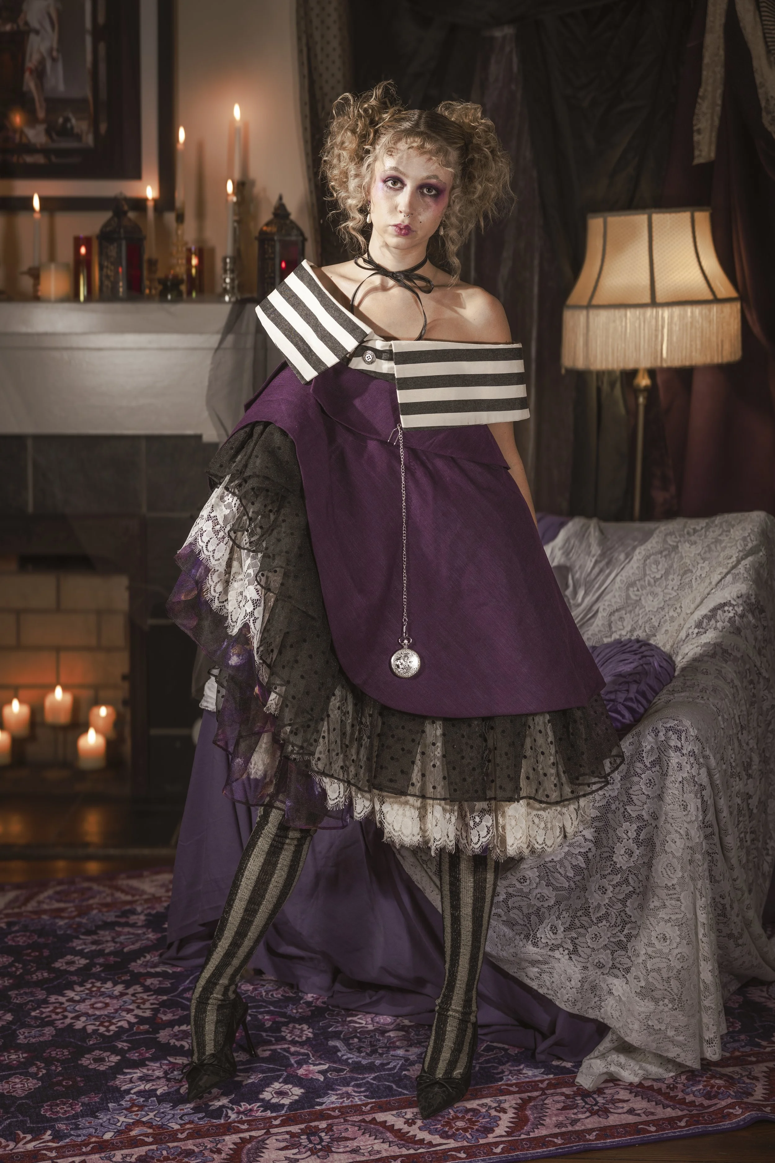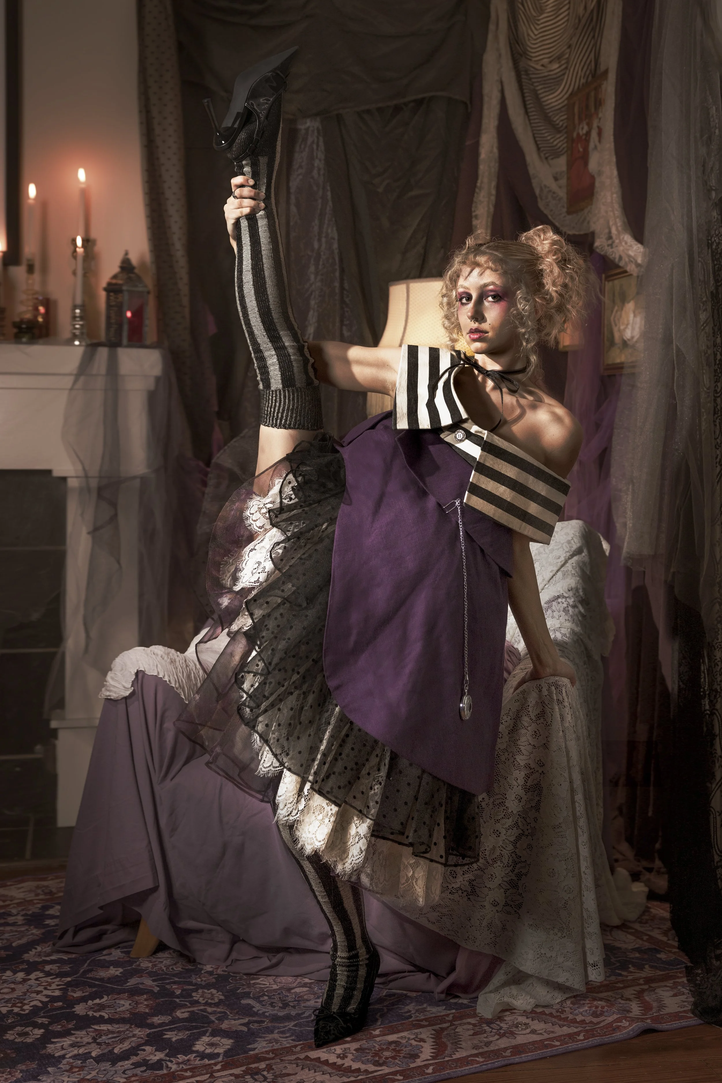La Vie En Violette is a collection that honors the lives, loves, and deep friendships within the underground community of fin de siècle France, known as Paris Lesbos. This collection seeks to preserve the history of queer women and celebrate lesbian identity through fashion. It explores the stories of remarkable women—artists, poets, authors, courtesans, and performers—who gathered in secret at lesbian salons, cabarets, and cafés to share culture and pay homage to Sappho. This collection reimagines the queer signaling fashions of Paris Lesbos for the modern queer woman, allowing her to express her identity and connect with a rich historical legacy.